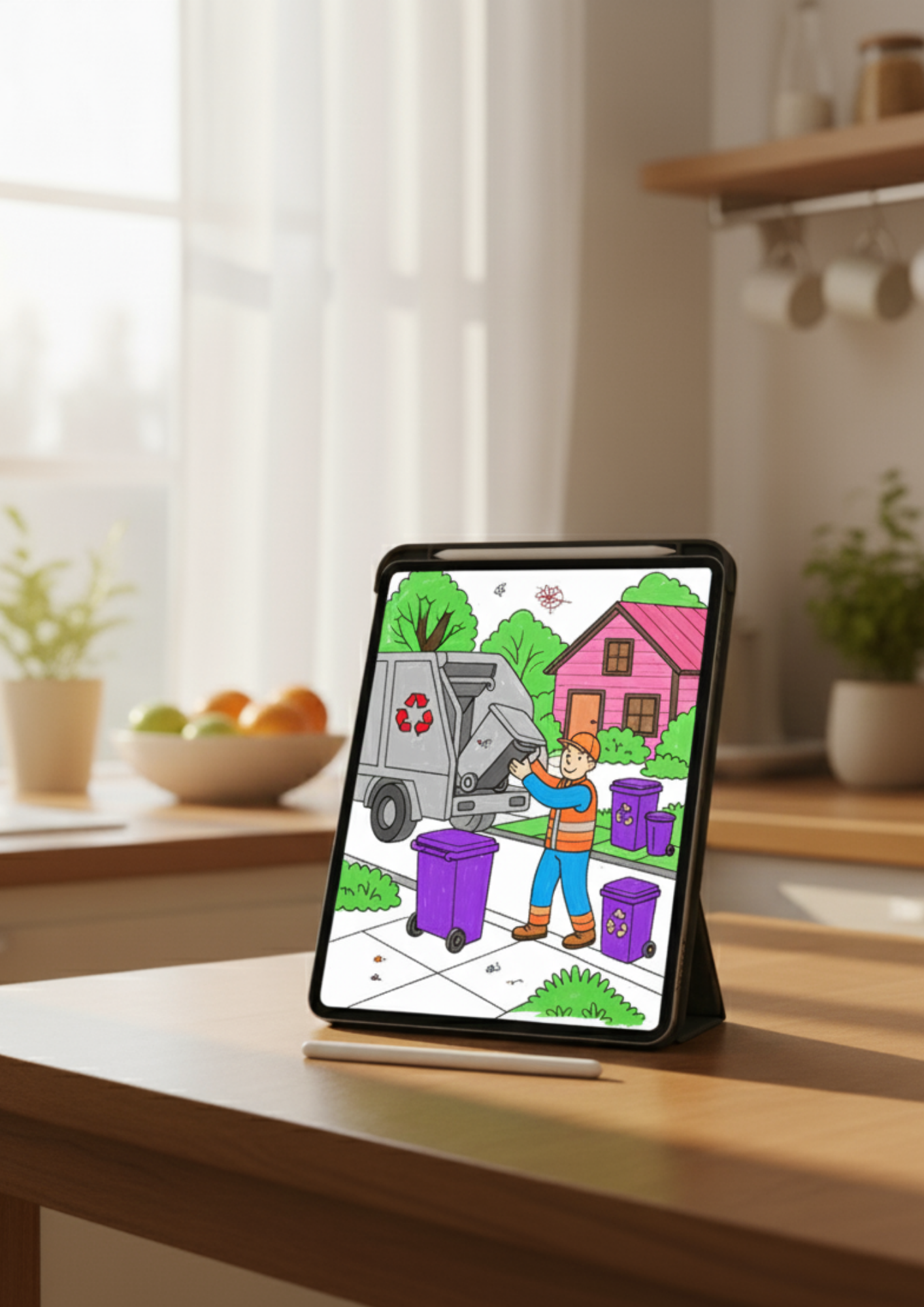 Jobb vi ser varje dag är en färgglad introduktion till vardagens hjältar, från brandmän och busschaufförer till byggarbetare. Med 18 målarbilder och lika många enkla faktatexter får barnen både en rolig aktivitet och en förståelse för hur viktiga yrken fungerar. Anpassad för barn 4–10 år och levereras som PDF, redo för surfplatta eller utskrift.