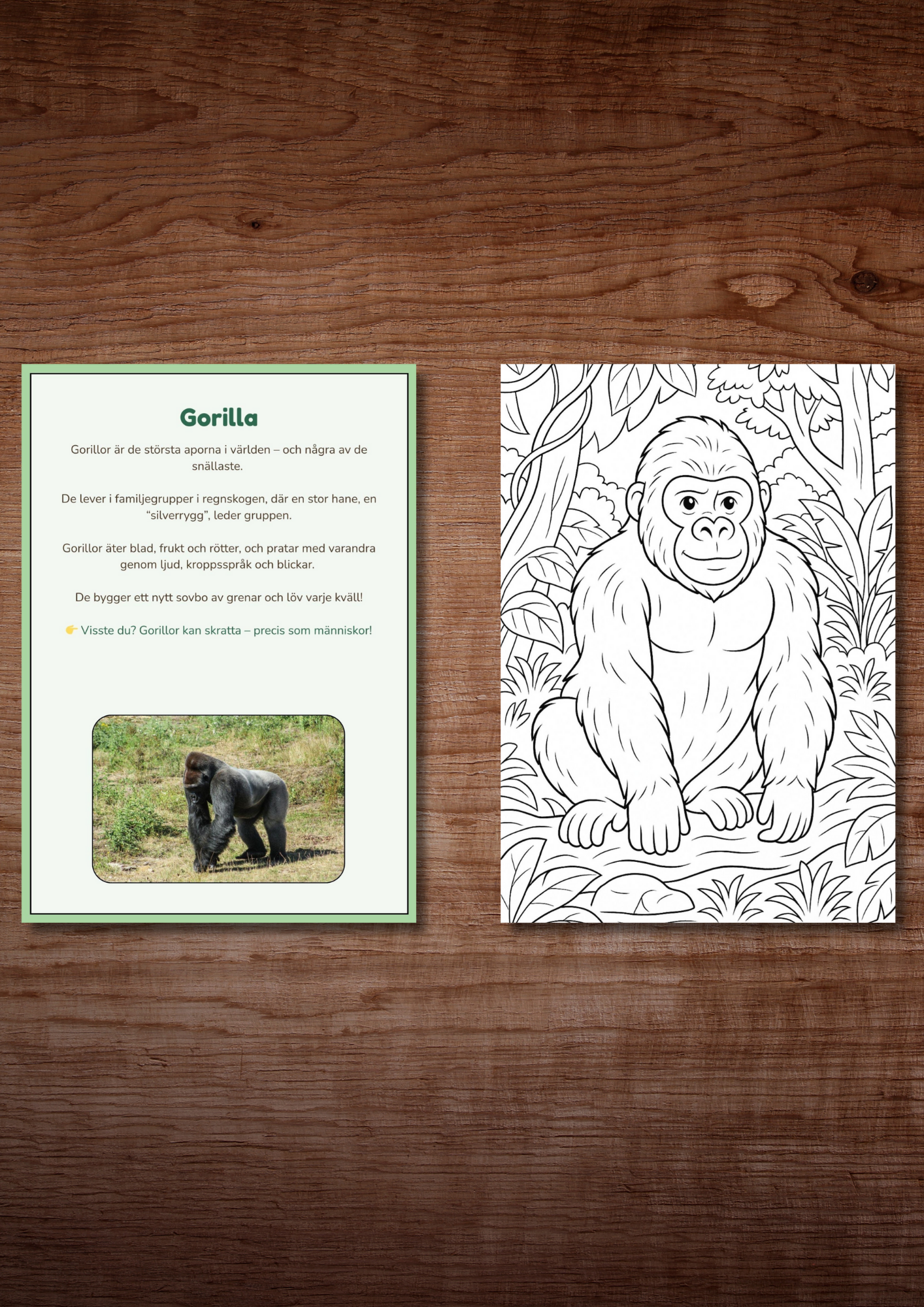 Jag blev så positivt överraskad över hur genomtänkt innehållet är. Det är inte bara en bild med lite text – varje djur har en hel sida med spännande fakta som verkligen fångar barnets intresse. Min dotter älskar att först färglägga och sen be mig läsa allt om djuret. Det blir ofta startskottet till jättefina samtal!