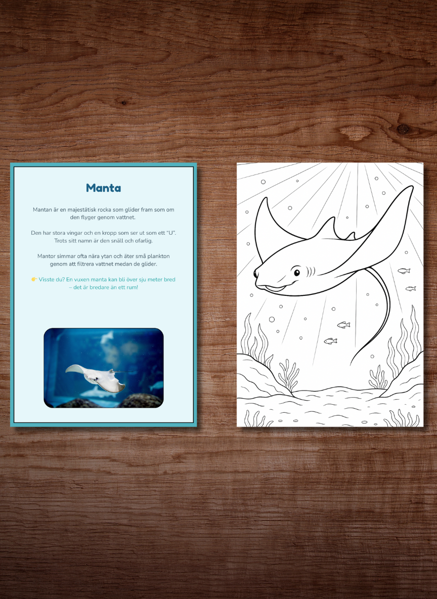 Jag blev så positivt överraskad över hur genomtänkt innehållet är. Det är inte bara en bild med lite text – varje djur har en hel sida med spännande fakta som verkligen fångar barnets intresse. Min dotter älskar att först färglägga och sen be mig läsa allt om djuret. Det blir ofta startskottet till jättefina samtal!