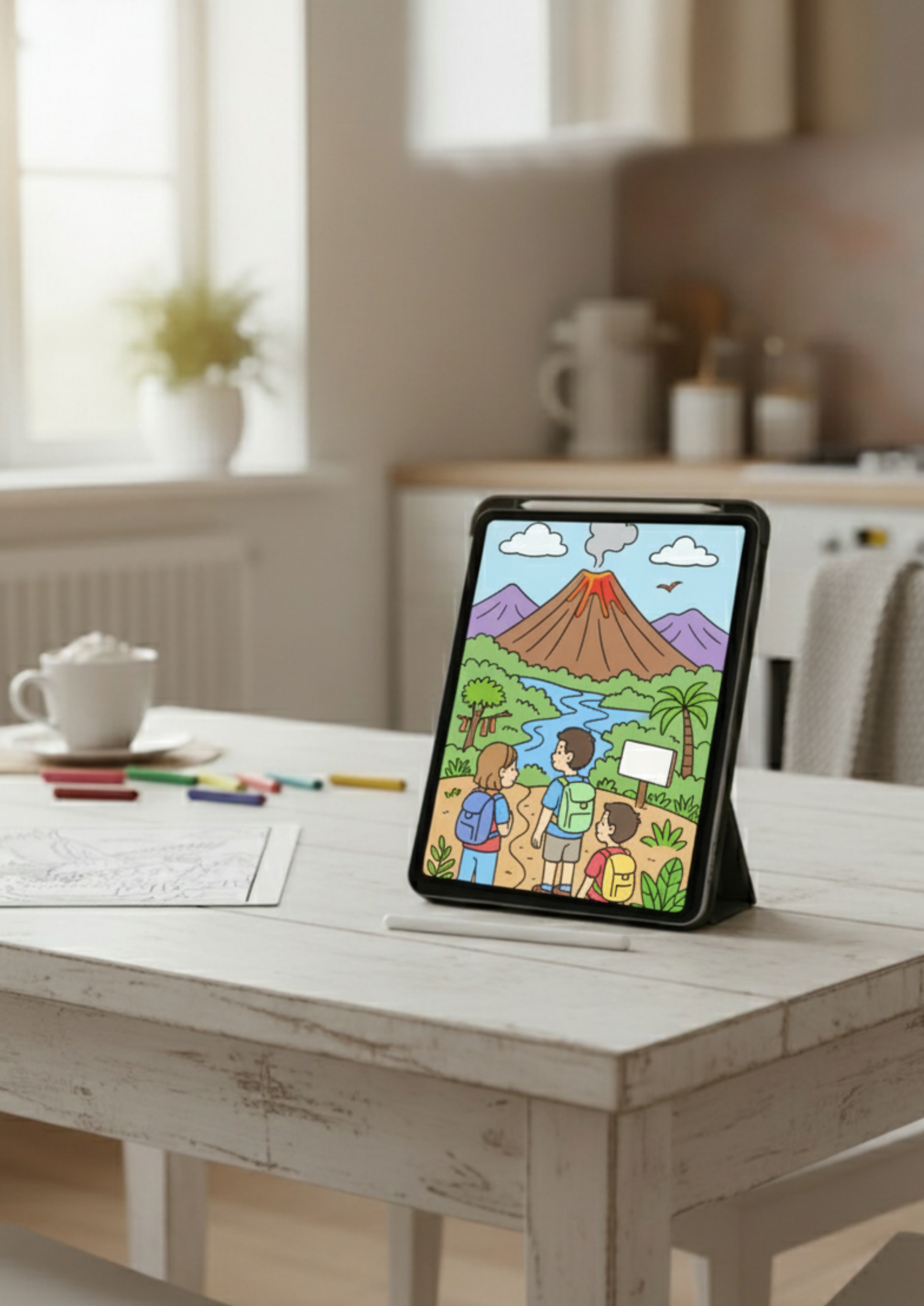 Vi använder materialet både på iPad och i utskriven version. Det är så snyggt upplagt: först en hel bild att färglägga, sedan en hel faktasida om djuret – perfekt för barn som är nyfikna. Min dotter älskar särskilt att läsa upp fakta för mig efter att hon färglagt. Det känns som att vi har hittat något som både är kul och utvecklande.