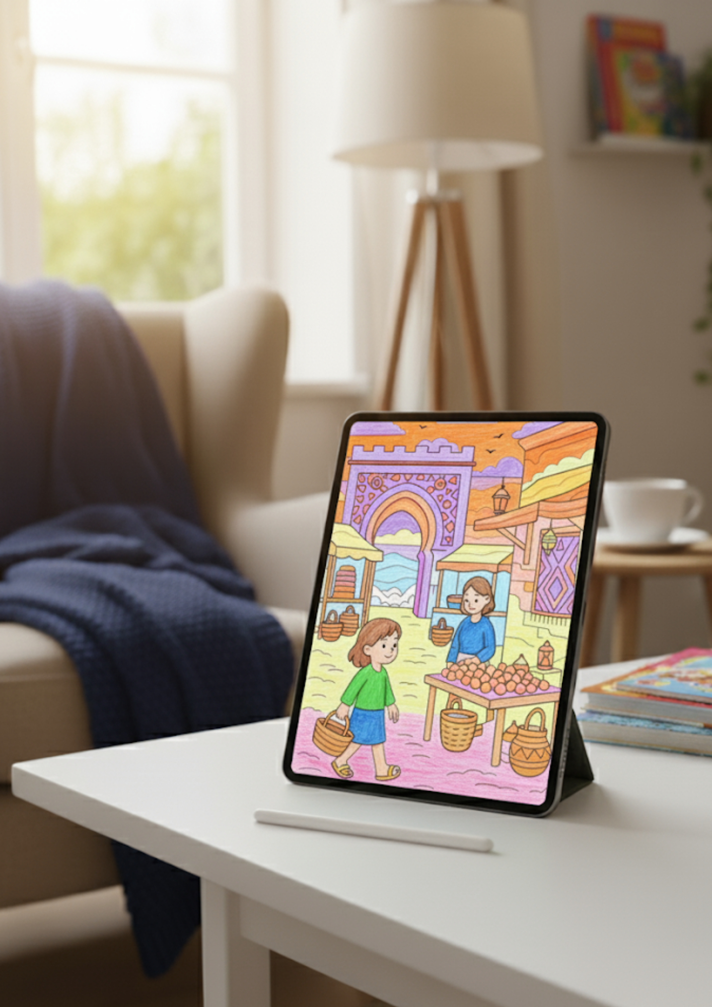 Öppna boken direkt i någon standardapp på din enhet som stödjer digital målning – t.ex. Filer på iPhone/iPad eller Samsung Notes på Samsung.