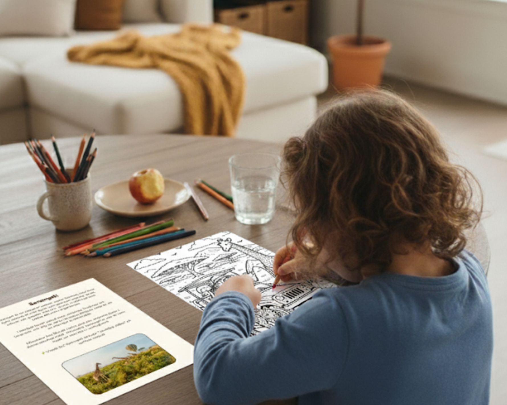 Vi använder materialet både på iPad och i utskriven version. Det är så snyggt upplagt: först en hel bild att färglägga, sedan en hel faktasida om djuret – perfekt för barn som är nyfikna. Min dotter älskar särskilt att läsa upp fakta för mig efter att hon färglagt. Det känns som att vi har hittat något som både är kul och utvecklande.